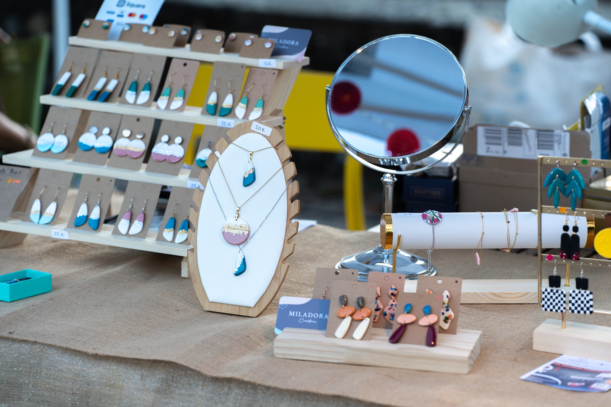 Miladora propose des collections de bijoux artisanaux imaginés et confectionnés en Alsace. Des boucles d'oreilles aux colliers, bagues ou bracelets, mes créations originales en argile polymère et acier inoxydable sont légères et colorées. Et sont faites pour révéler la personnalité et l’audace de celles qui les portent. Possibilité de commandes sur-mesure et organisation d’ateliers créatifs pour une expérience personnalisée.