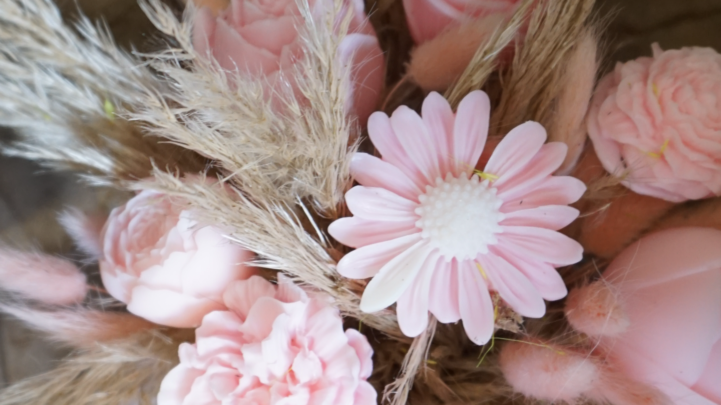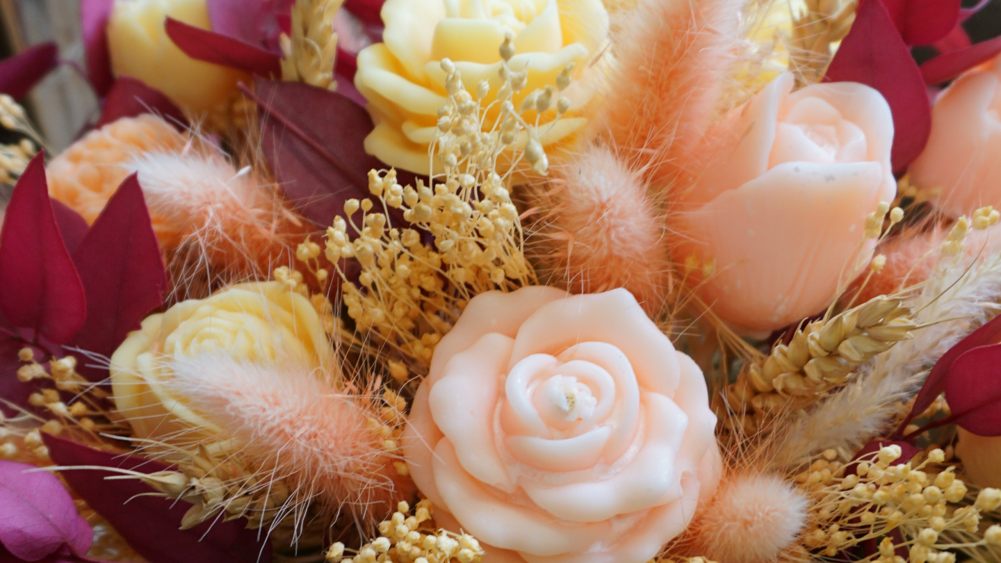 Composition de fleurs en cire et de fleurs séchées