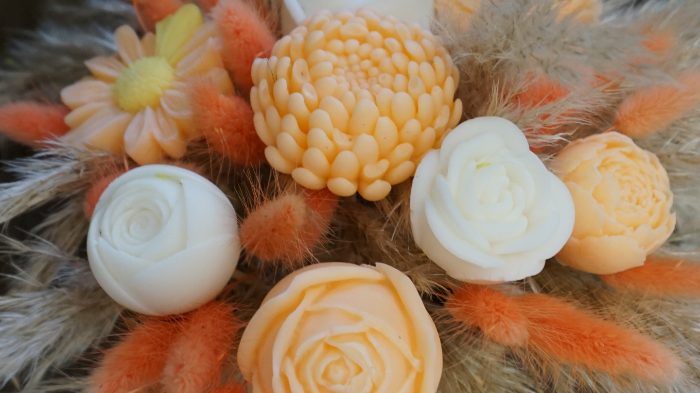 « Créateur artisanal de bougies fleuries, fondants parfumés et compositions en cire 100% végétale, fabriqués à la main en Bourgogne. »