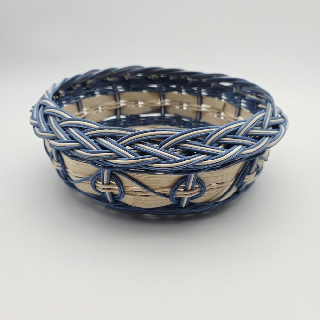 Panier asymétrique bleu marine et écru en rotin naturel - anse bois...