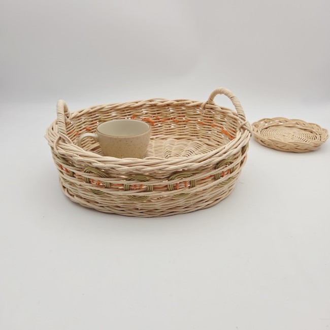 Petit panier rond en rotin naturel écru - décorations cerises -...